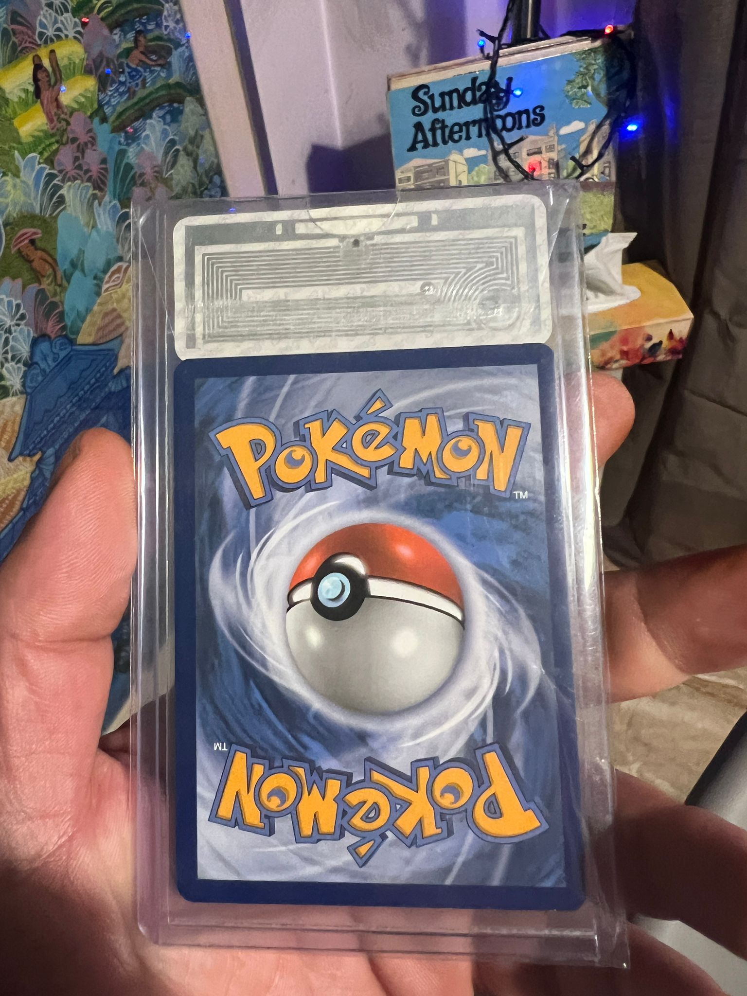 Si tratta dell'oggetto collezionabile di tipo carta da gioco, protetto all'interno dell'apposita custodia rigida in plastica trasparente. La carta, realizzata in cartoncino, presenta un'illustrazione complessa e colorata, tipica del genere fantasy moderno. L'epoca apparente è del 2021, come indicato sull'etichetta di gradazione. Le condizioni generali sono eccellenti, certificate da una valutazione professionale di 'MINT 9', che ne attesta l'ottimo stato di conservazione e la quasi assenza di imperfezioni.La vista aggiuntiva mostra il retro dell'oggetto, una carta collezionabile sigillata in una custodia trasparente. Spiccano i dettagli del design con la Poké Ball centrale e la scritta La carta è racchiusa in una custodia trasparente del servizio AIGrading®, con un'etichetta che indica il grado MINT 9. Si notano i dettagli del numero di serie A000140281 e del titolo