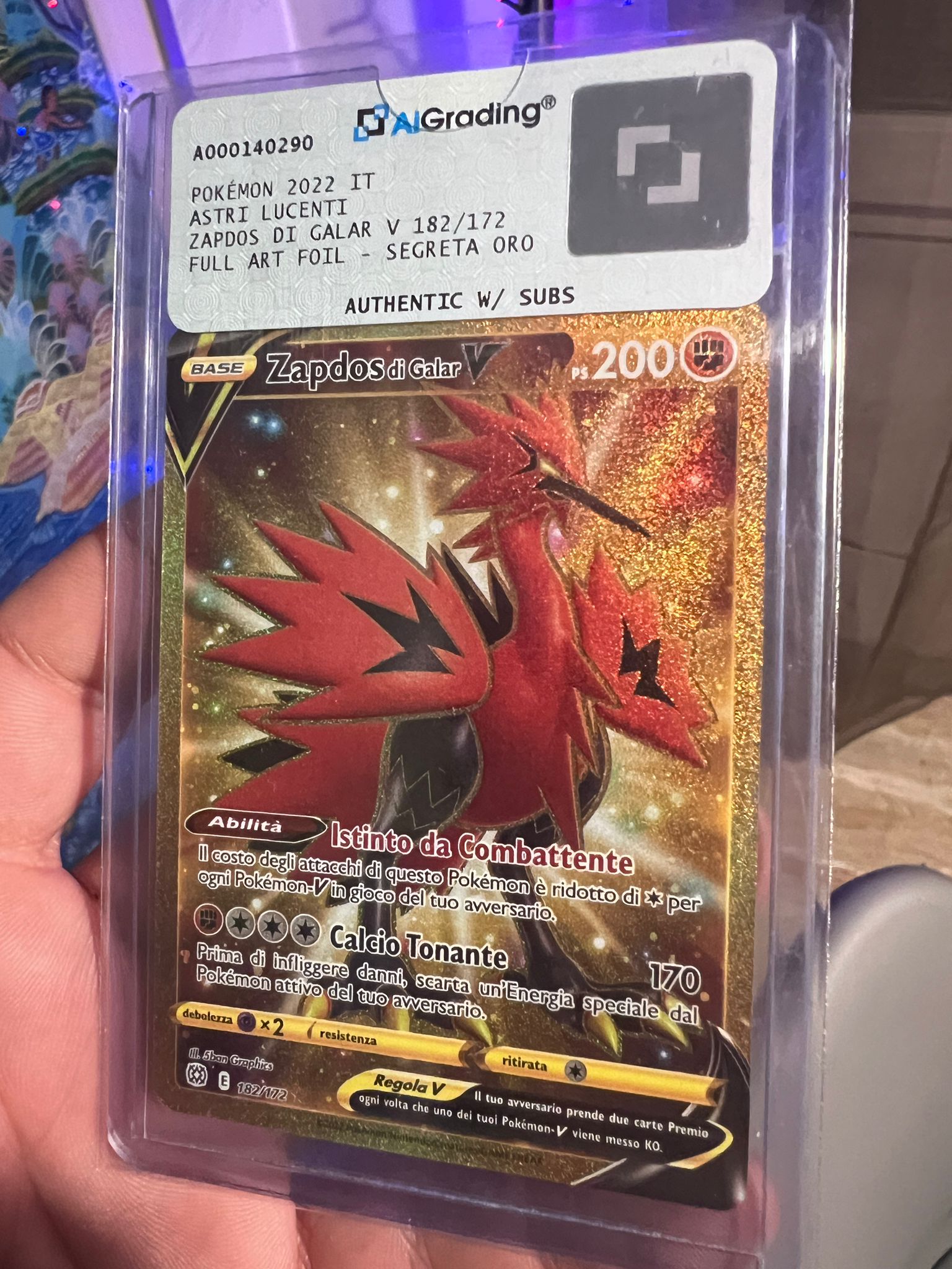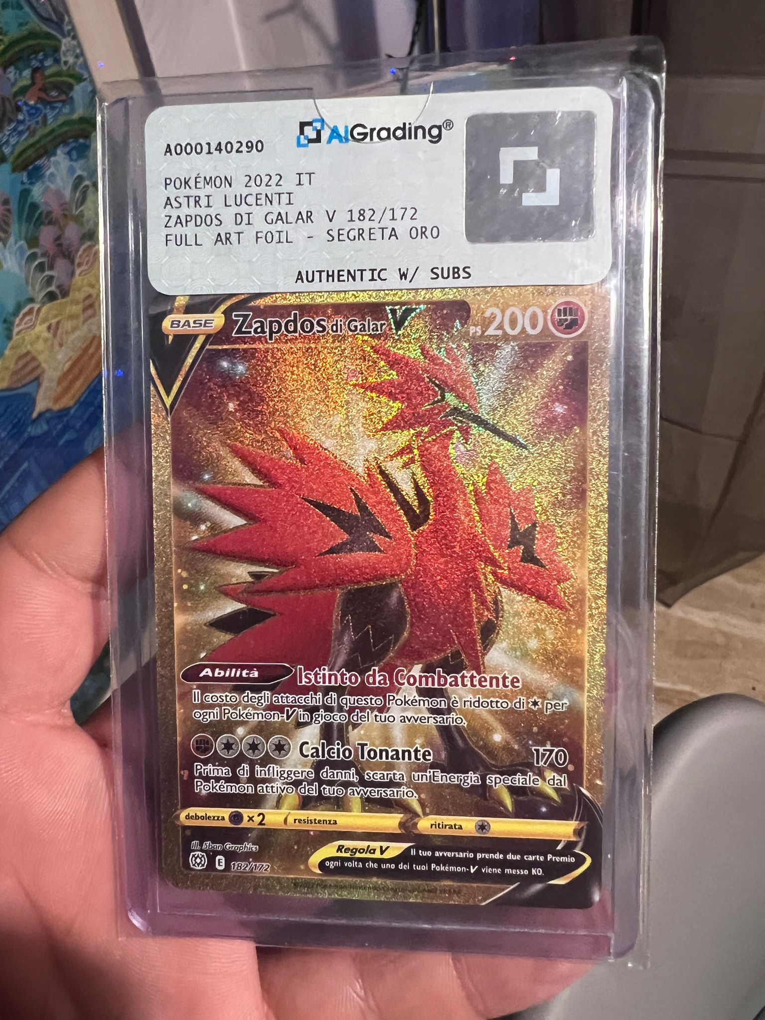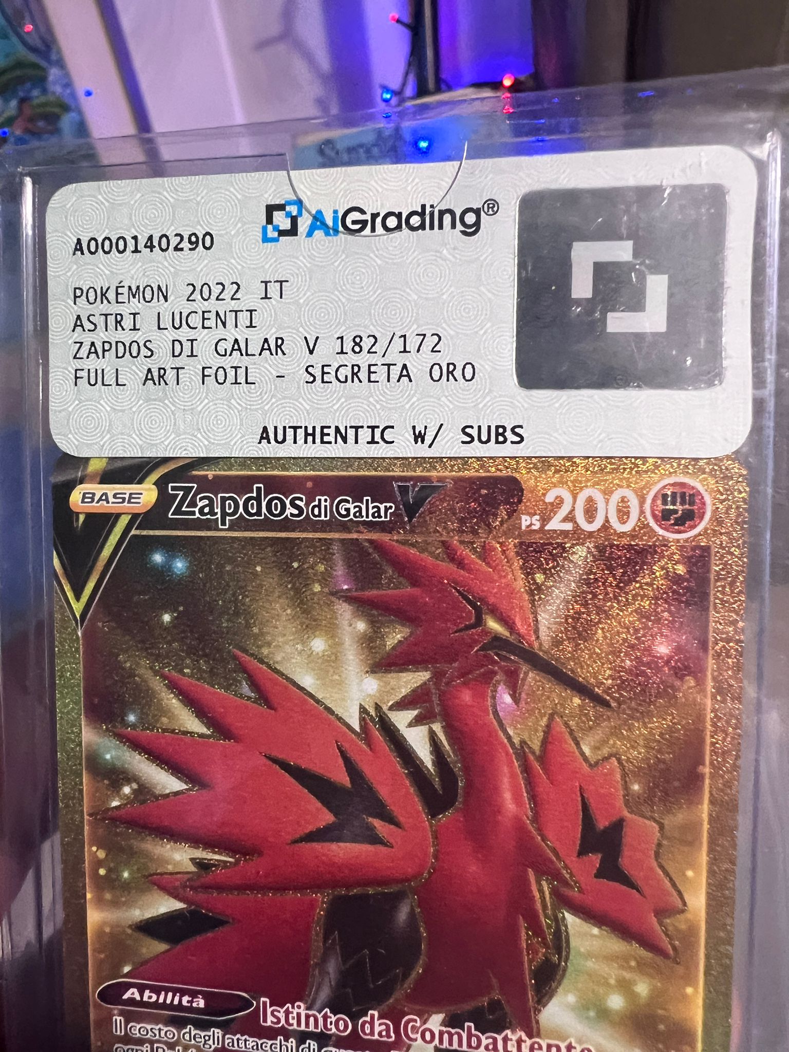 Pokémon / AIGrading Zapdos di Galar V / Astri Lucenti (2022) - Rara carta Pokémon Zapdos di Galar V Full Art Foil (182/172) dal set Astri Lucenti (2022), gradata AIGrading. Condizioni eccellenti.