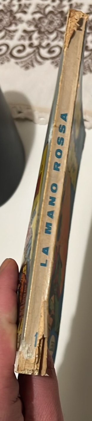 Questo esemplare è il primo numero della storica collana 'Tex Gigante', intitolato 'La Mano Rossa', pubblicato da Edizioni Araldo (ora Sergio Bonelli Editore) nel Marzo 1964. Il fumetto presenta le avventure del celebre ranger Tex Willer, figura iconica del fumetto western italiano. La pubblicazione mensile, con Sergio Bonelli come direttore responsabile, include anche pagine editoriali e promozionali dedicate ad altri personaggi popolari dell'epoca come Kit Teller (Il Piccolo Ranger) e Zagor, evidenziando il contesto del fiorente mercato editoriale post-bellico in Italia. L'oggetto è realizzato in carta e inchiostro, con dimensioni stimate di 21 cm di altezza, 16.5 cm di larghezza e 1 cm di profondità. Le condizioni del fumetto sono usurate, con un rating di 4/10. La copertina mostra abrasioni, pieghe e sfilacciature, particolarmente evidenti agli angoli. La costa è gravemente danneggiata e sfilacciata alle estremità, con significative perdite di materiale cartaceo, compromettendo l'integrità strutturale. Le pagine interne presentano ingiallimento uniforme, pieghe e alcune crepe, tipiche dell'invecchiamento e dell'uso prolungato. Nonostante il deterioramento fisico, tutti i testi e le illustrazioni rimangono leggibili e distinguibili, mantenendo l'autenticità del pezzo, che è confermata con un punteggio del 100%. Questo esemplare rappresenta un significativo frammento della storia del fumetto italiano, pur necessitando di cure per la sua conservazione.